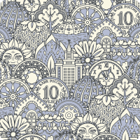 See the city’s busy life in Day in Moscow with its St. Basil’s domes, coins, wedding cakes, and other signature details.