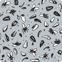 Created for gift boxes, Flies & Sunflower Seeds pattern signifies those odd trinkets commonly received as gifts, while being appropriate to enclose nice heirloom presents as well. The artwork flies smoothly with textiles and various other surfaces. We don’t recommend sizing it up too much.