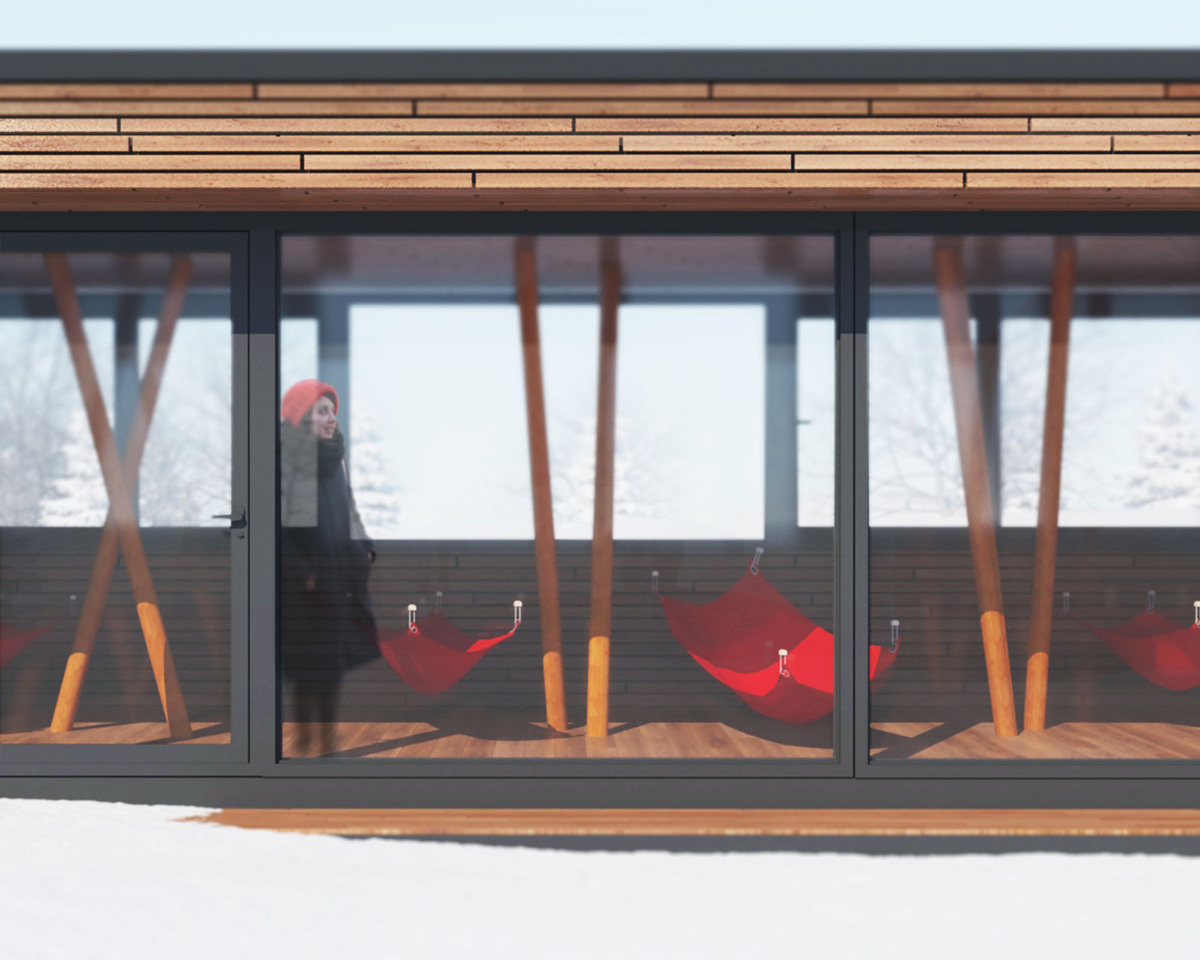 Walking in a park in the winter is wonderful: snow-covered trees are all around, snowdrifts sparkle in the sun, birds are jumping from branch to branch. There’s only one problem: about half an hour later your fingers start feeling numb and the only thing you want to do is get into a hot bath. To prolong the pleasure of winter walks, we have developed Pavilyonuses, heated pavilions that provide warmth and comfort in cold days.