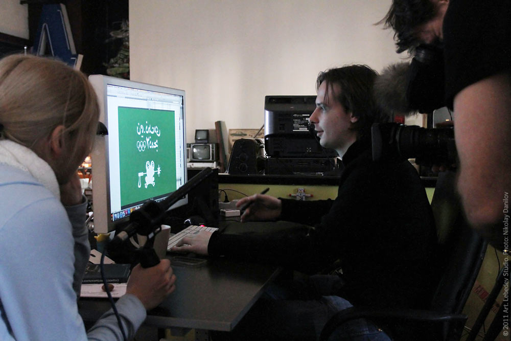 Designer Yegor Zhgun (pictured in the center) gives an interview to Al Jazeera TV channel (Quatar) about Zoich.