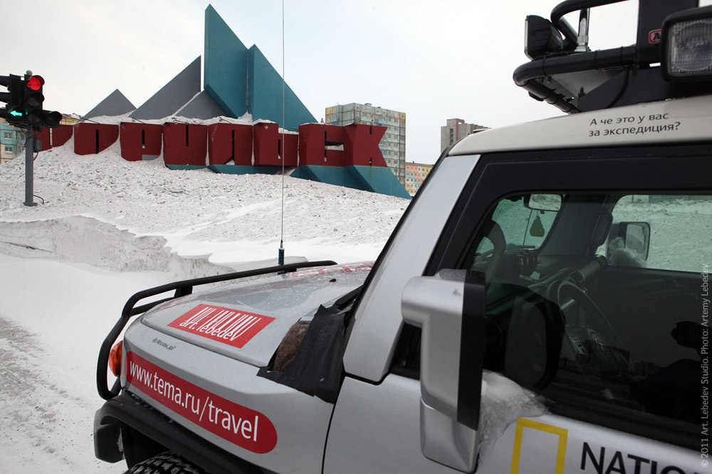 Artemy Lebedev on his truck Coucousique has completed the route from Neryungri to Norilsk (pictured) through Yakutsk, Mirny, Udachny, Saskylakh and Khatanga as part of the Yakut Ethnographic Expedition 2011. Previously, light cars and trucks have never reached Norilsk from the north.