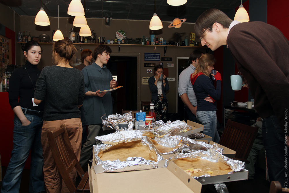 ![]() Hot freshly baked pizzas daily delivered to the studio’s café last for exactly eight minutes. See also: the pizzas in the oven.
