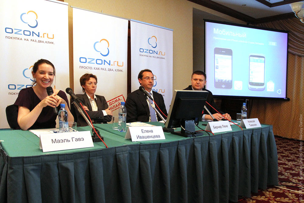 ![]() On April 6 Ozon online store held a press conference in Moscow during which the representatives of the company summed up the work in 2010 and spoke about the future development of the project. Pictured: Ozon deputy director general Maelle Gavet (far left) speaks about the improved shopping cart, new search results and Ozon.ru apps for iPhone and Android created by Art. Lebedev Studio for the company.