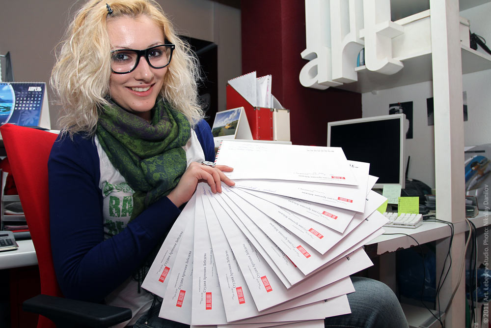 Art. Lebedev Studio office manager Armina Azaryan demonstrates last Friday’s outgoing offline mail of the studio.