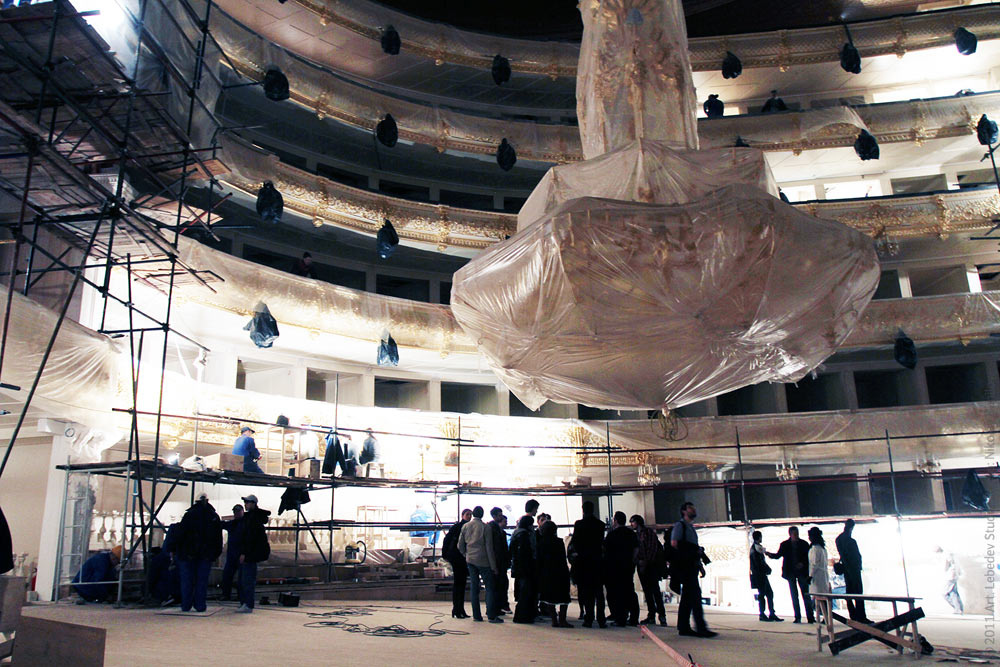 Art. Lebedev Studio employees watch the restoration of the Bolshoi Theatre.
