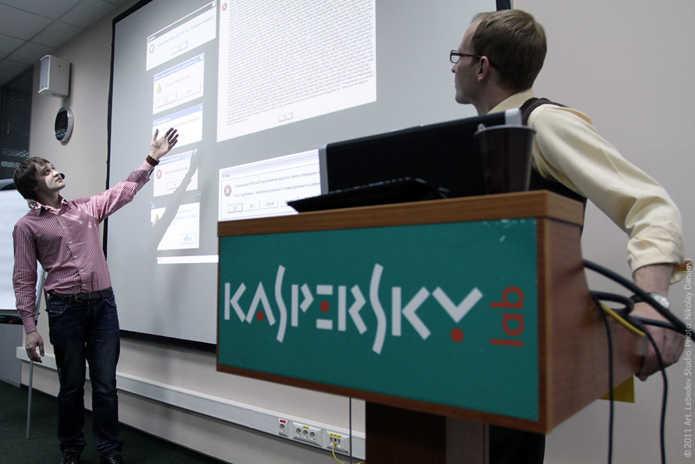 ![]() We have already shown how in March head of Kaspersky Lab software creation, support and testing department Maksim Dorofeev visited Art. Lebedev Studio to speak about the role of mathematical statistics and game theory in project management. In April representatives of the studio made a reciprocal visit and held a seminar in Kaspersky Lab Moscow headquarters. Pictured: designer Igor Pugachevsky and manager Maksim Dolgov explain how good interfaces are different from bad ones and how carefully planned interacton of users with information systems makes users happy and increases sales.