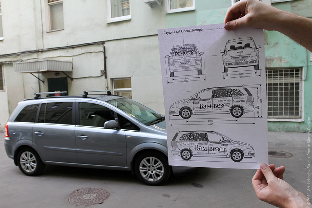 Employees of the studio started applying decals to the studio’s Opel Zafira.