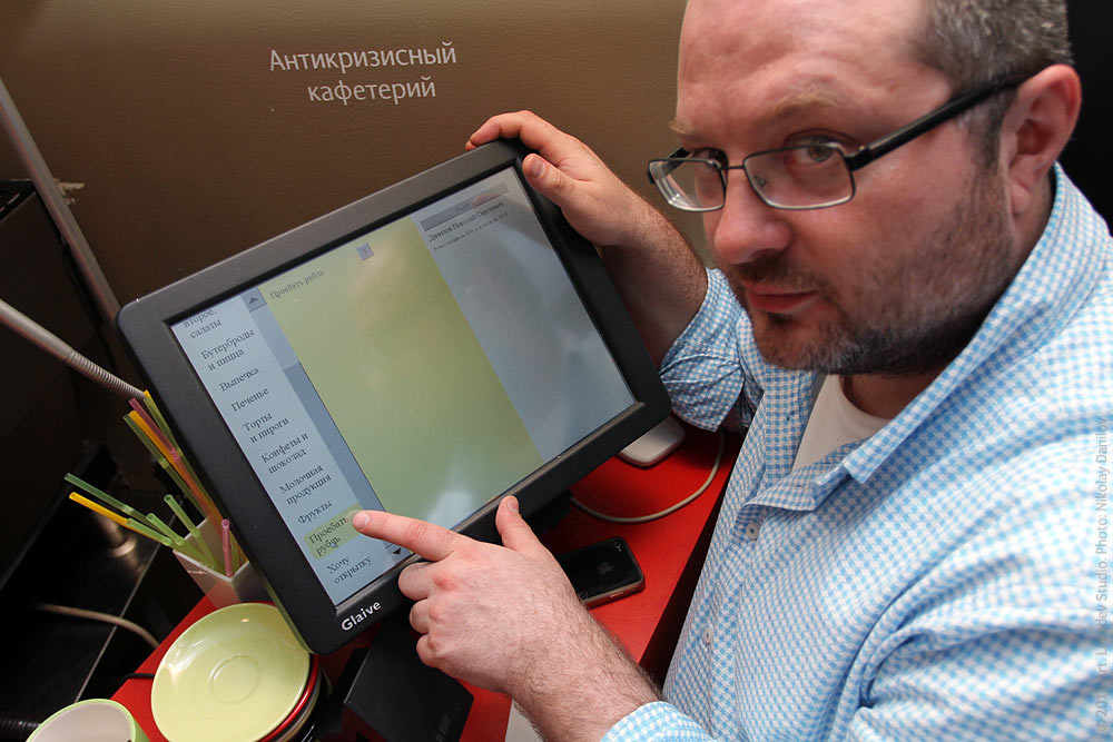 ![]() The café on the fifth floor of the studio is equipped with an automated billing system: the employees can tap their personal card on the terminal to pay for food and drinks. A month ago art director Ludwig Bystronovsky (pictured) added a menu item “Lose a ruble” to allow anyone spend a ruble for nothing. Since the function was introduced, studio employees have lost 545 rubles.