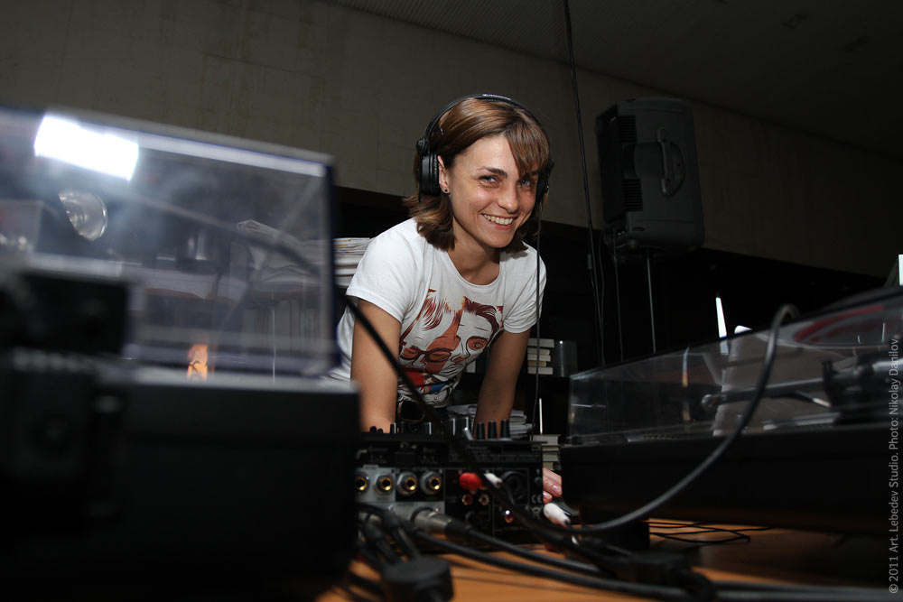 ![]() Each Friday night various DJs perform on the fifth floor of the studio. Pictured: head of support department Darya Sviridova plays different types of house.