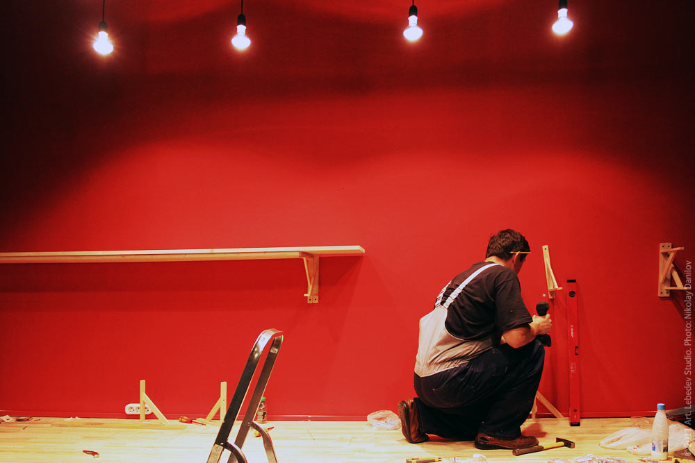 Engineer Dmitry Fomichev finishes renovation of the workshop on the fifth floor of the studio.