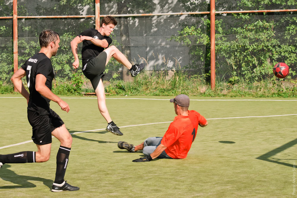 ![]() The studio's 5th Mini Football Championship took place at Nauka Stadium. Seven teams made up of current and former studio employees took part in the competition (women’s team Mad Horses, men’s teams Pierluigicollina, Nogi, 18FPS, Borsch, Buran and Devlebedev). Pictured (left to right): technologist Sergey Levenets and copywriter Aleksandr Shtefanets (Pierluigicollina), technologist Anton Fedchenko (Devlebedev).