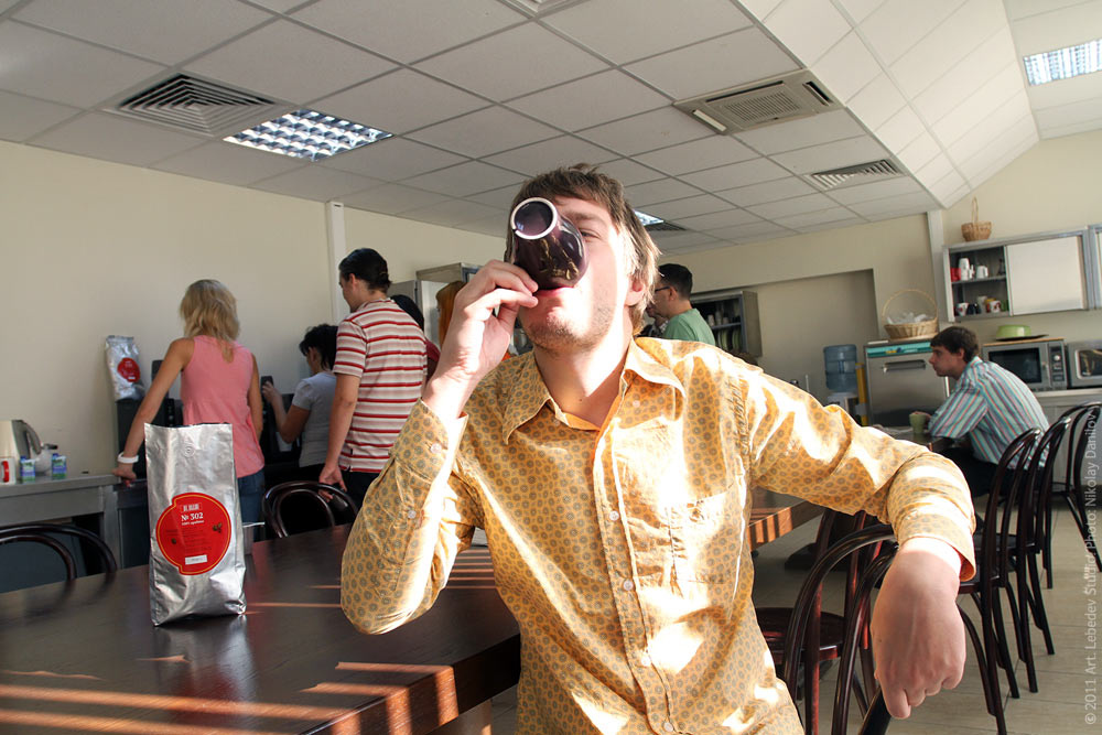 ![]() Sup Fabric Moscow headquarters hosted a coffee tasting event featuring our coffee blend #302. Here Sup product development director Ilya Dronov is savoring a cup of nice brew.