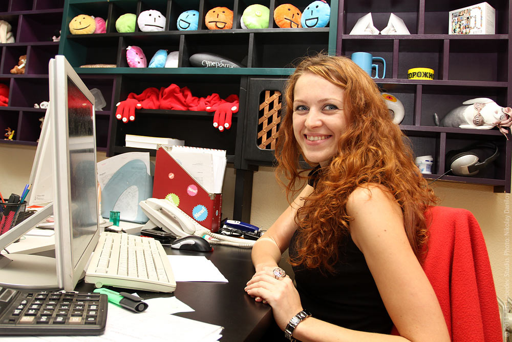 Sales manager Yelena Tretiakova at her desk.