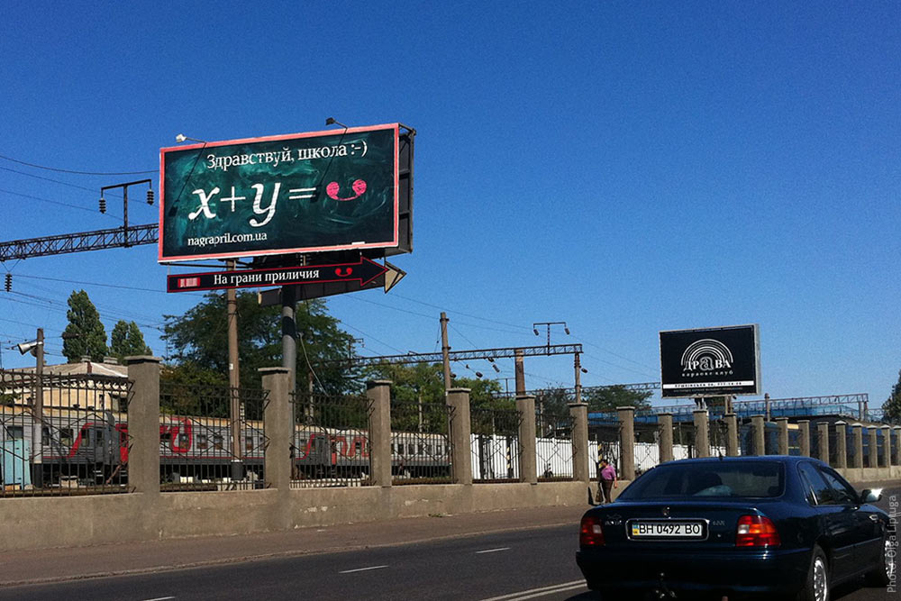 ![]() Our Odessa partner store Na Grani Prilichiya welcomes a new school year with a bold billboard playing on similarity of classic math symbols and Russian too-well-known swear word.