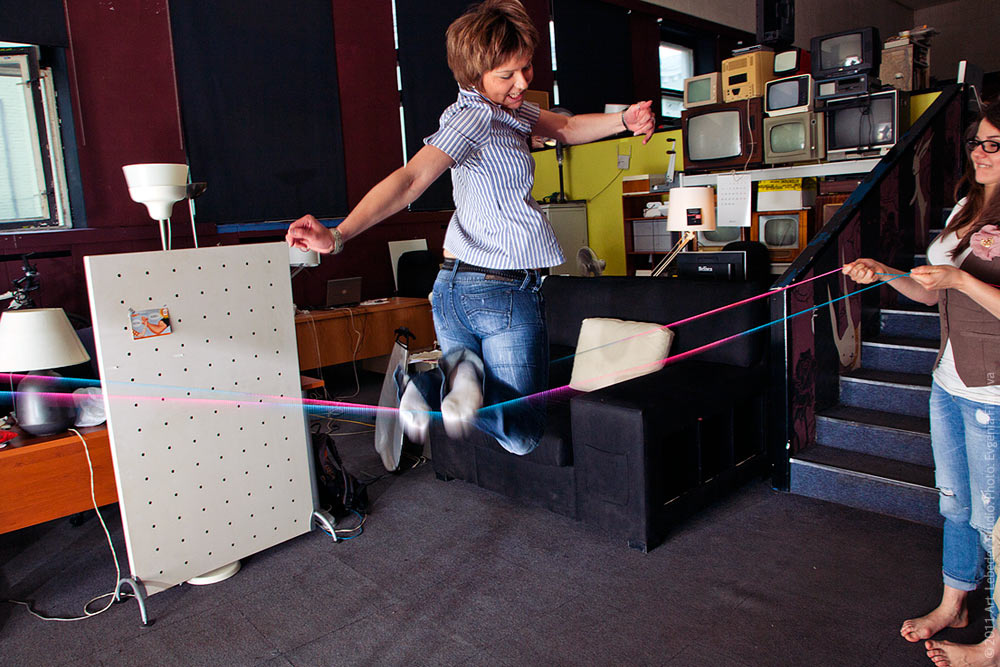 ![]() Project manager Natalia Iliycheva demonstrating some sky-rocketing skills at the fifth floor of the studio’s headquarters.