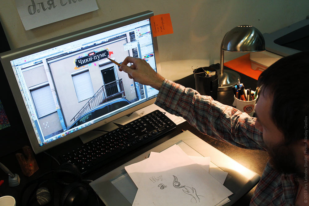 ![]() Our new partner store—Chiky-Pums—is opening in Saint Petersburg (2 Brinko Per.) on November 1. Pictured: type designer Nikita Kanaryov with a store front plate sketch.