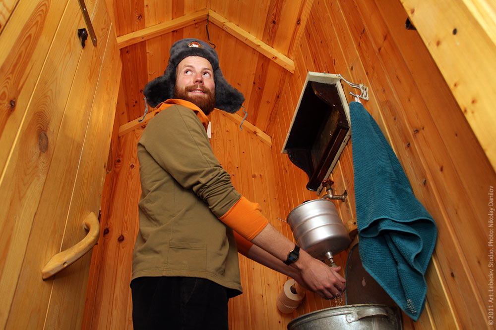 ![]() Designer Benoit Patoureaux enjoying his favorite object of Russian industrial design—“rukomoynik” hand washing system—at the restroom on the fifth floor of our headquarters.