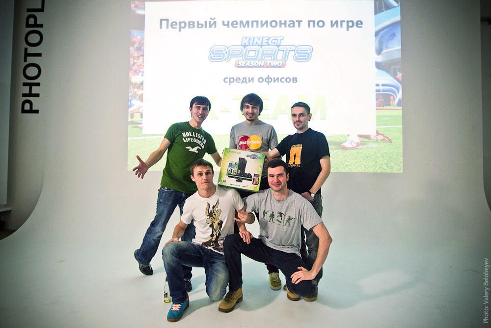 ![]() The studio’s team with the main trophy won at 1st X-Team Kinect Sports, Season Two Office Championship. Top row, from left: flash-technologist Dmitry Bezverkhy, designers Mikhail Miroshnikov and Fedor Fokin. Bottom row: designer Oleg Pshenichny and head of graphic design department Aleksey Luri.