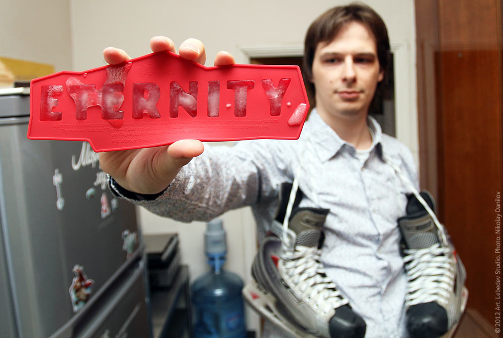Yegor Zhgun— designer of the Eternity ice tray—with the English version of his creation.