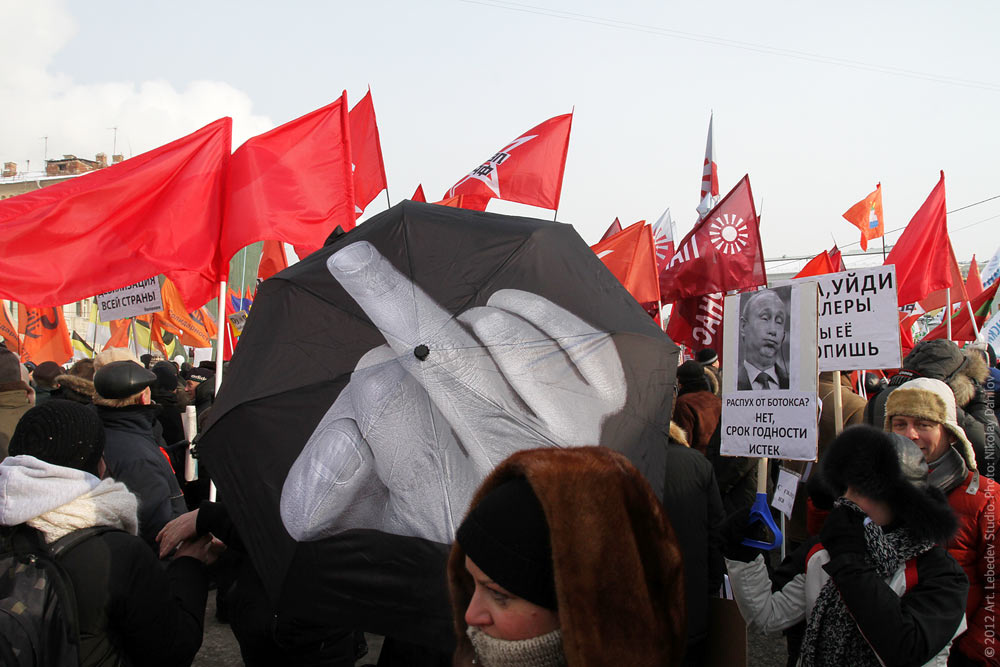 umbrella participates in protests on Bolotnaya Square, Moscow.