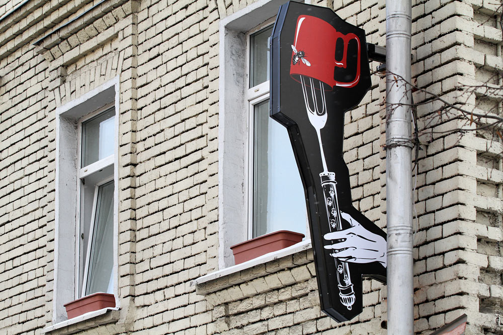 Art. Lebedev Studio Store & Café on Bolshaya Nikitskaya got dressed up with a new sign.