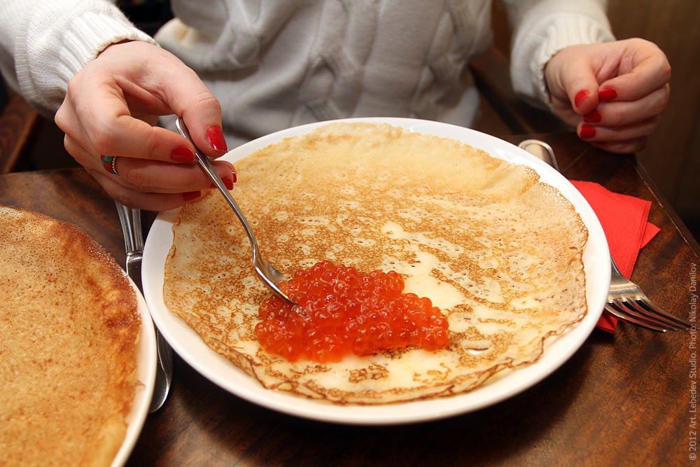 Blini pancakes tasting at the studio’s café on Bolshaya Nikitskaya.