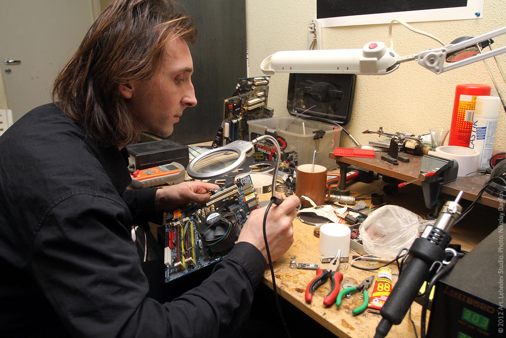 IT specialist Anton Avdusin at his desk.