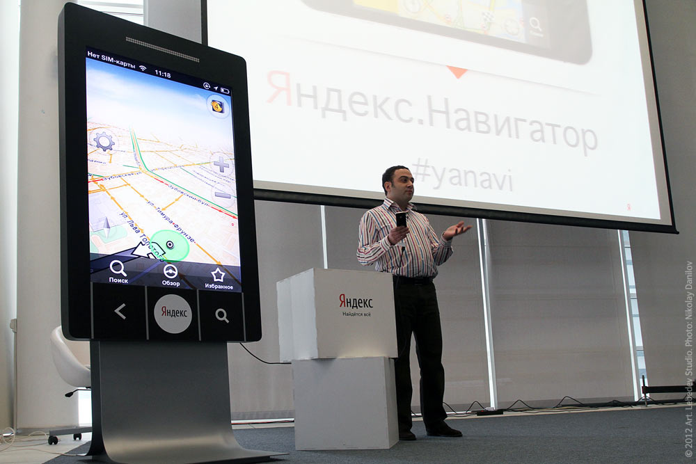 ![]() Press-conference at Yandex Moscow headquarters: Tigran Khudaverdyan, head of mobile department, presenting Yandex Navigator, a GPS service for iPhone and Android.