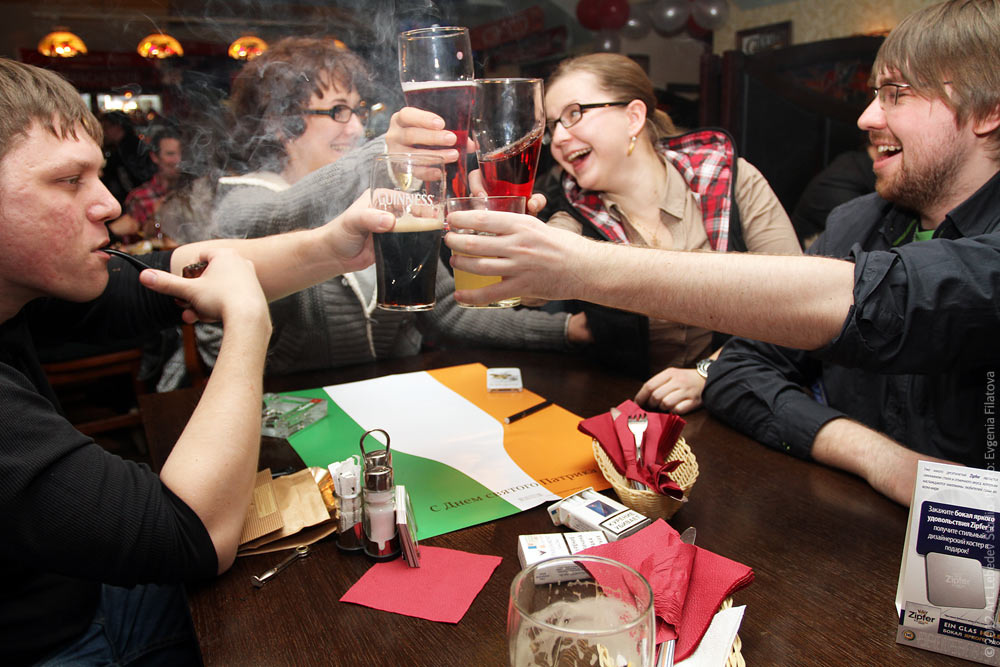 ![]() From left: project manager Andrey Gundyrev, head of web development Oksana Klimenko, head of web support department Veronika Kyshova and project manager Vladislav Pasechnik celebrating Saint Patrick’s Day at on of the Irish pubs in Moscow.