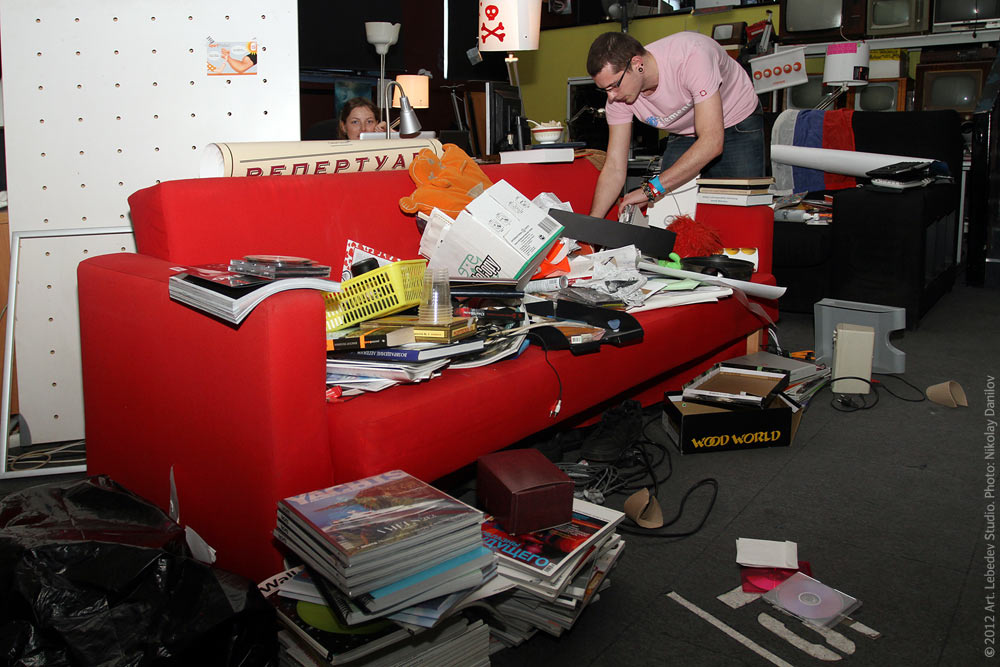 ![]() Once a year the studio’s going through a powerful spring cleaning when everyone straightens out his workplace by picking out all the unwanted stuff. The pile of rejected items then becomes a pile of treasures waiting for a new owner to sit them on his desk. It’s like a major garage sale in a loop.