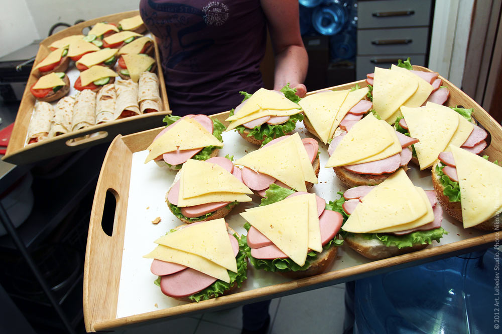 On weeknights, the studio’s barista takes a break from making coffee to prepare sandwiches for the guys working late.