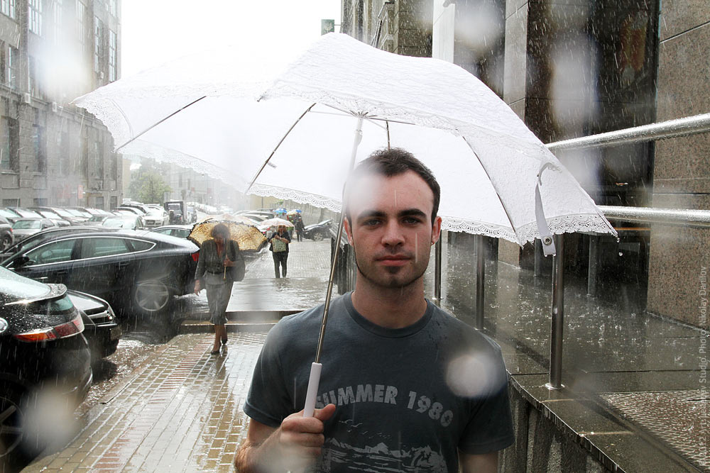 Sales associate Ivan Safin field-testing our new Lace umbrella.