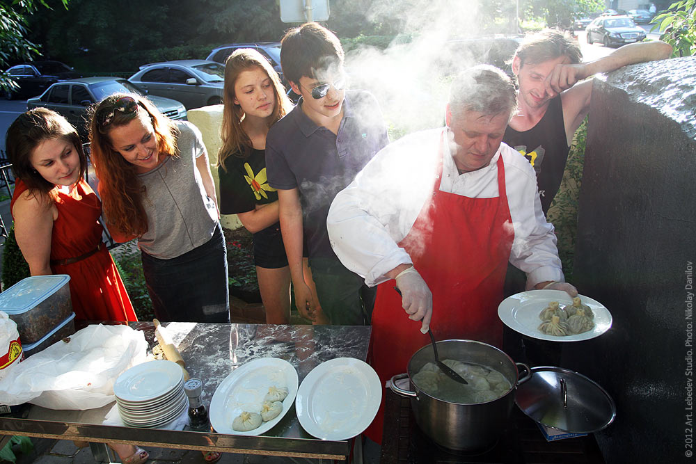 ![]() Kakha Eshba—chef at our café on Bolshaya Nikitskaya—showing how to make authentic khinkali during a cooking class for the studio’s employees.