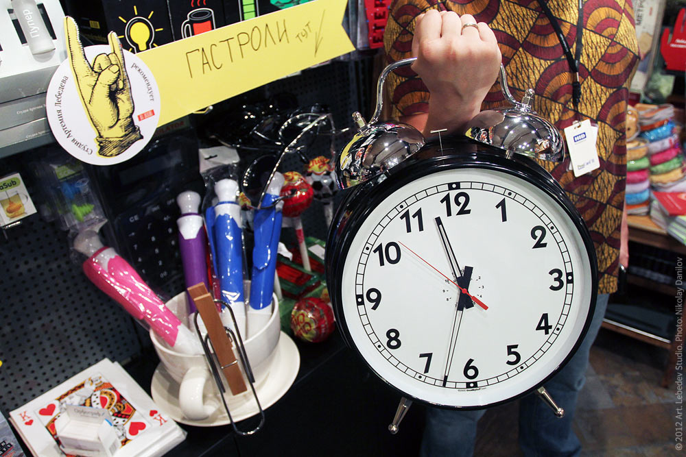 ![]() Our Moscow and St. Petersburg stores host another traveling sales. This time it’s all things jumbo: think a mammoth of an alarm clock (pictured), gigantic lighters, enormous calculators, huge paper clips, and other biggies.