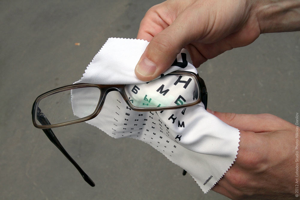 Project manager Maxim Dolgov wiping his glasses with Microfibrus Okularus.