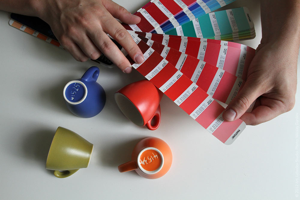 ![]() Ceramic samples are being studied in the industrial design department and the palette for the new edition of Atmark 2.0 mugs is being chosen.