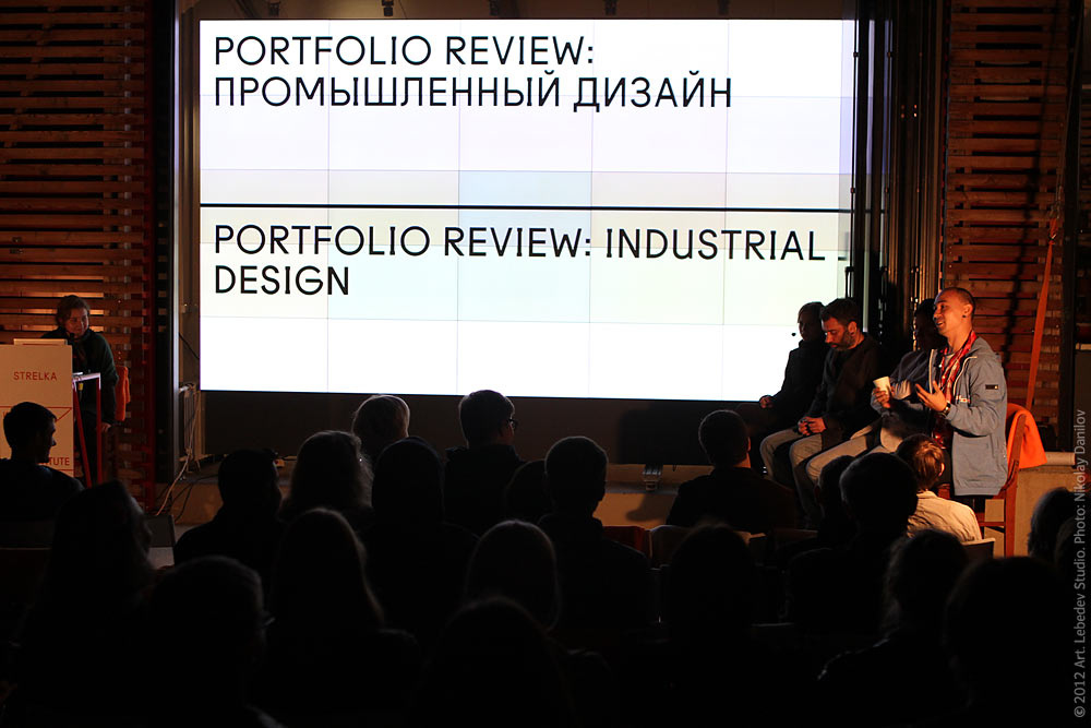 ![]() Strelka Institute: the studio’s art director Timur Burbaev (right, with a glass) speaking on the proper look of an industrial designer’s portfolio.