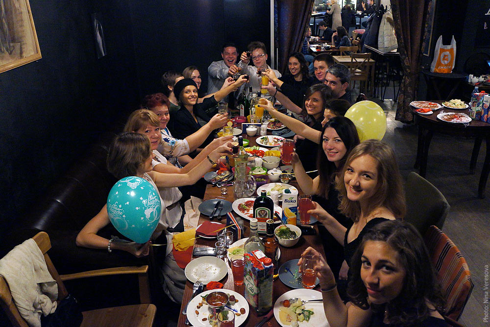 The studios Big Café: hostess Ksenia Mandrik (at the far end of the table) is getting married.