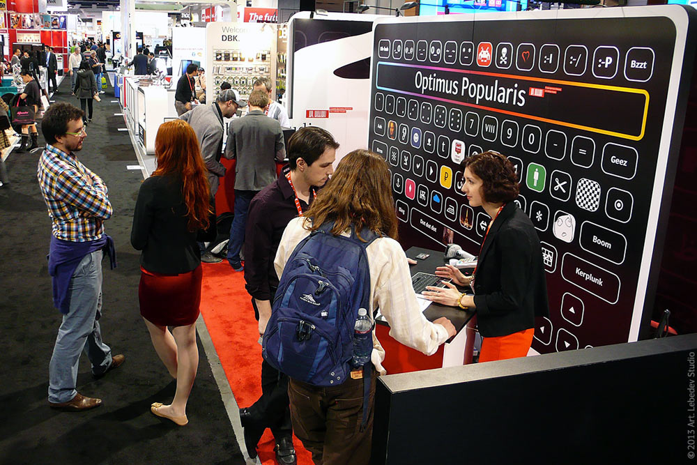 ![]() Las Vegas, Consumer Electronics Show 2013: the trade fair visitors studying Optimus Popularis keyboard at the studio’s booth. The show is open January 8 thru 11, our booth #35603 sits on the upper level of the South Hall.