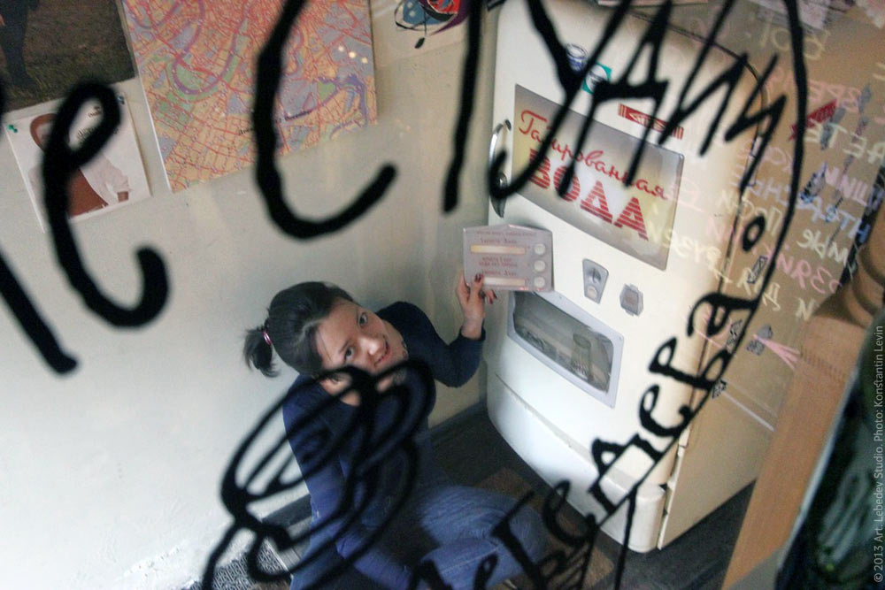 The studio’s St. Petersburg store: hostess Alevtina Kulinova turning a fridge into a Soda Machine from Soviet era using the special magnet set.