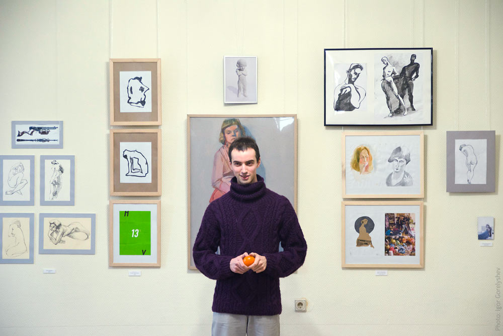 Designer Nikita Nikitin opening Artwork & Artists exhibition displaying works by Fast Sketching Club members.