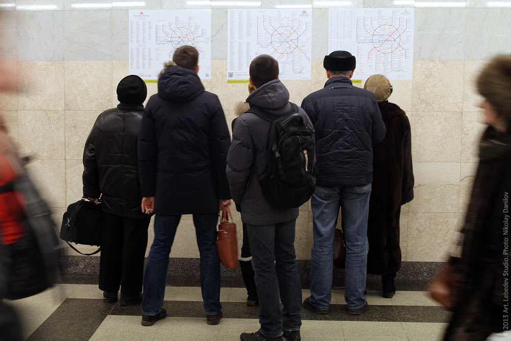 Moscow Metro brought to the public three maps from the finalists of an open competition for the best Moscow metro map organized by the Department of Transport and Road Infrastructure Development. The works can be seen at the connection between Tsvetnoy Bulvar and Trubnaya stations (pictured) and at the connection between Kitay-Gorod stations of Tagansko-Krasnopresnenskaya and Kaluzhsko-Rizhskaya lines. One of these projects is the Moscow Metro map developed in our studio.