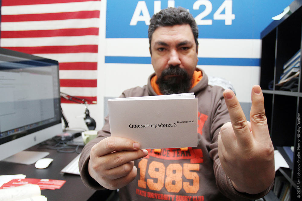 Art director Erken Kagarov with an interactive book Cinematografica 2.
