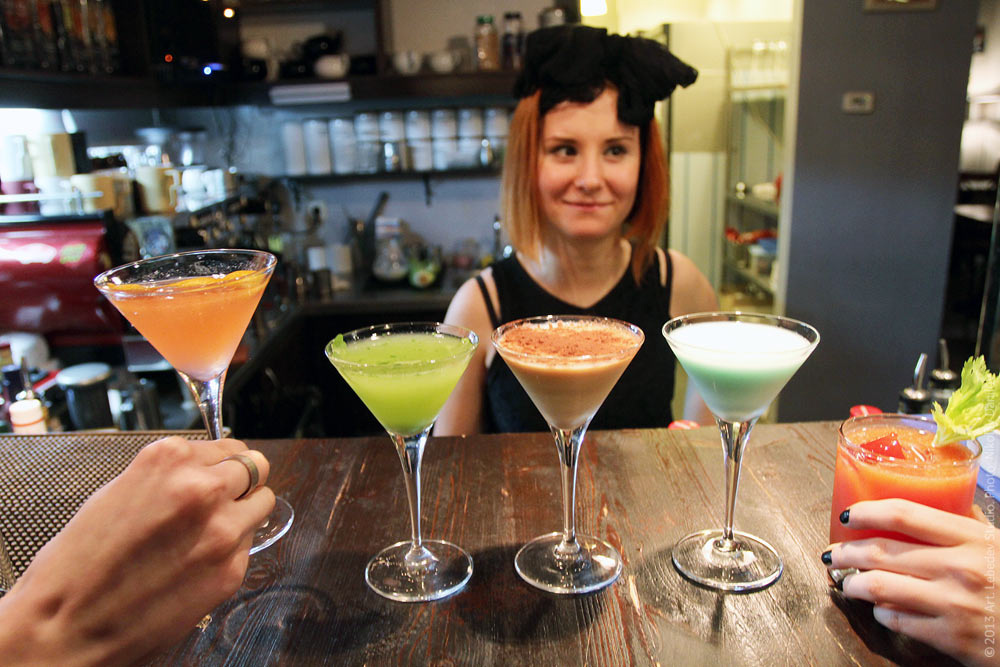 ![]() The studio’s Big Café has recently renewed the drink menu. Pictured (left to right): Hemingway Daiquiri, Quiet Martini, Alexander, barista Alisa Panafidina, Grasshoper, Bloody Mary.