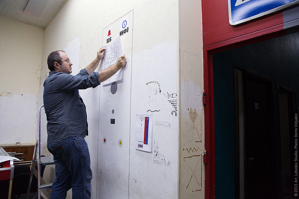 Art director Ludwig Bistronovsky working on the Moscow Metro Map version for the information towers.