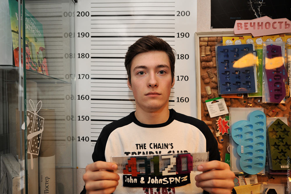 ![]() Magadan: Anton Krivoruchko—sales associate at the partner store Narochito Vichurno (Over The Top)—posing with a house number Digitus in front of a Rostomer poster.