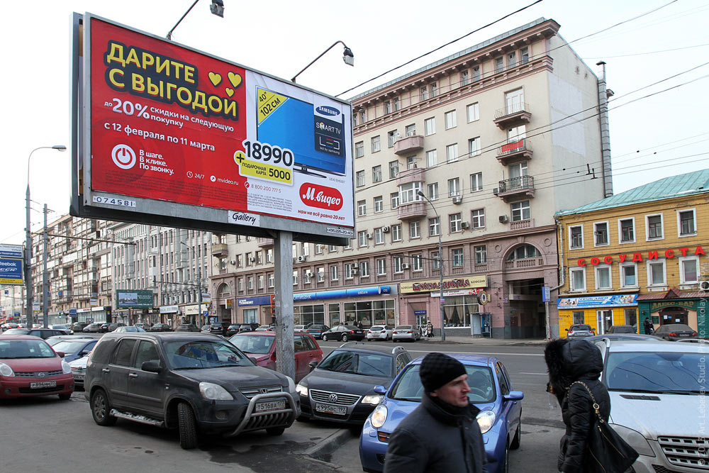 Moscow downtown, Krasnaya Presnya Street: billboard sporting M.Video corporate typeface designed in the studio.