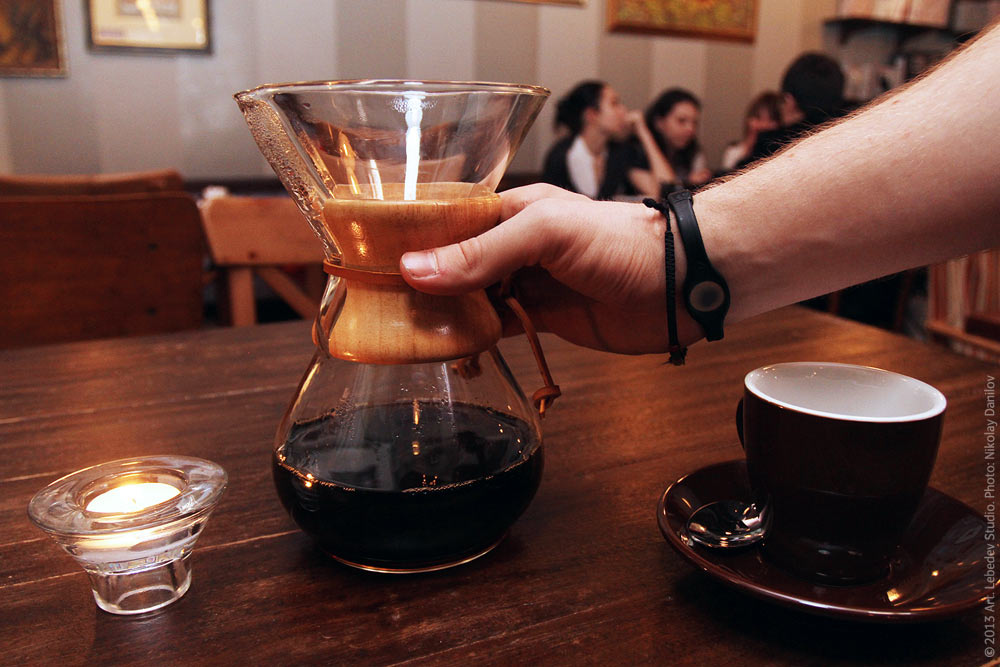 ![]() We started to prepare coffee in Chemex (pictured) and French press in our Moscow cafés on Bankovsky and Nikitskaya and in our St. Petersburg café on Zhukovskogo