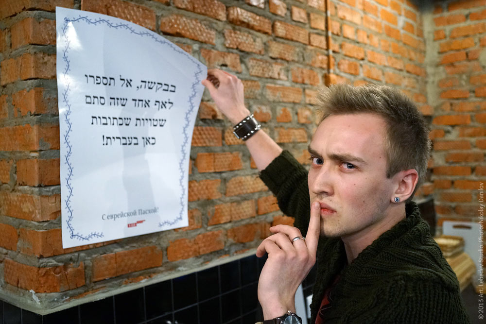 ![]() Barista Kirill Shevyakov dressing up the cafeteria on the seventh floor of our headquarters with a poster commemorating Pesach.
