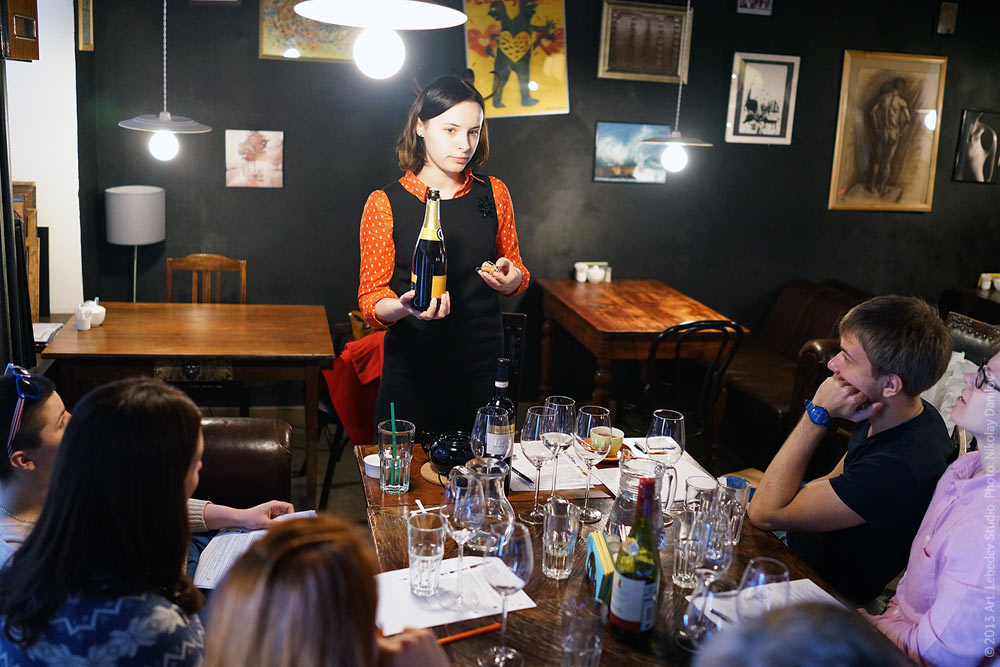 ![]() Tatyana Selivanova—Fort Wine vice head of the education department—introducing the new wines now sold and enjoyed at the studio’s Big Café to the place’s staff.